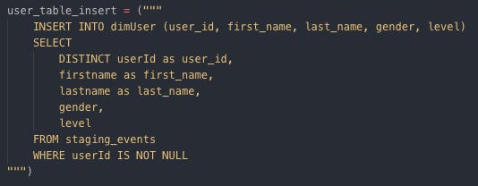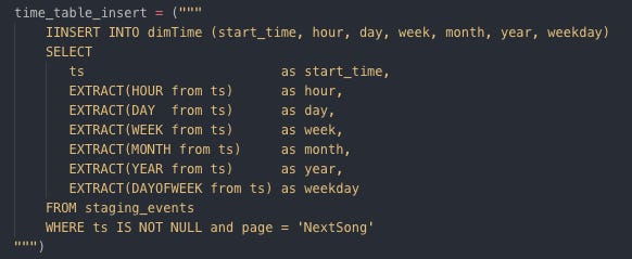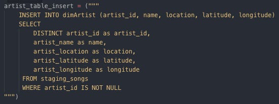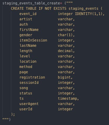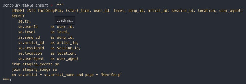 As a soon-to-be their data engineer, I am tasked with building an ETL pipeline that extracts their data from S3, stages them in Redshift, and transforms data into a set of dimensional tables for their analytics team to continue finding insights into what songs their users are listening to.